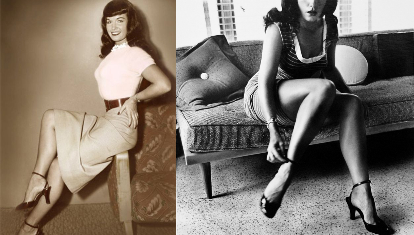 We all know Bettie had amazing hair, incredible lingerie and swimwear, but she also had some very progressive shoes! Fetish heels were fairly new and boy did she work them! From classic pumps to lace up platform boots (many people believe that these boots were photoshopped onto Bettie… NOPE!), Bettie had no fear of these towering terrors! Many of these shoes were lost after the New York Camera Club was shut down; however, there are a few of Bettie’s favorites out in the world 2 pairs in the possession of Dita Von Teese, the world renowned burlesque performer.