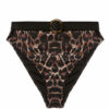Sun, sea and the bikini of dreams, this 50s inspired Leopard bikini top has that perfect vintage pin-up vibe. The Bettie Page swimwear collection is designed to accentuate your curves with classic silhouettes. The Jayne bikini features a flattering high waist fit, a flattering halter neck design and tortoise shell belt.